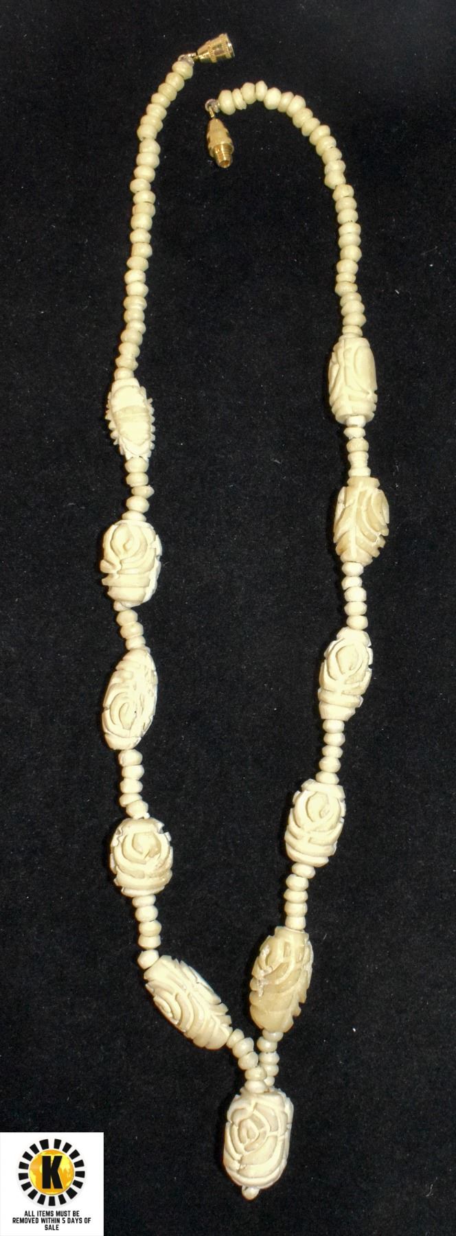 ESTATE CARVED IVORY ROSETTE OLD NECKLACE