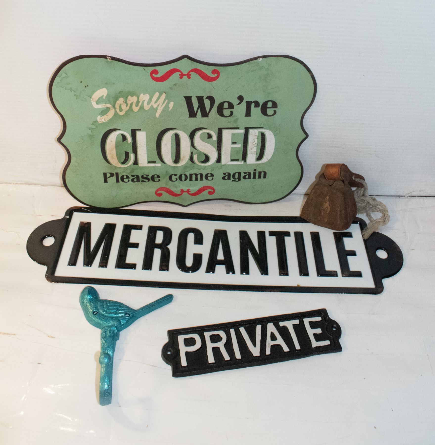ESTATE CAST IRON & METAL SIGNS, OLD BELL, & BIRD