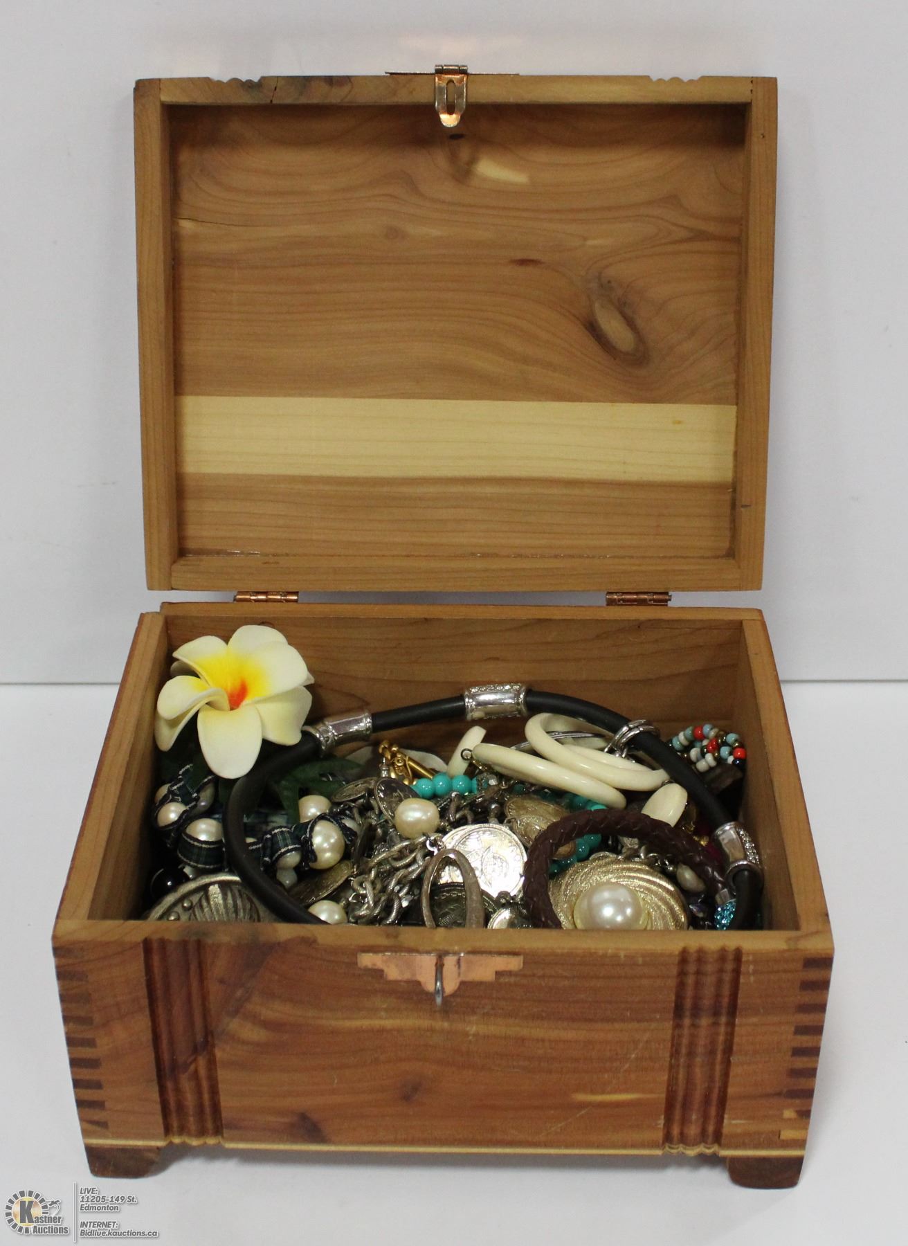 ESTATE CEDAR BOX FULL OF JEWELRY