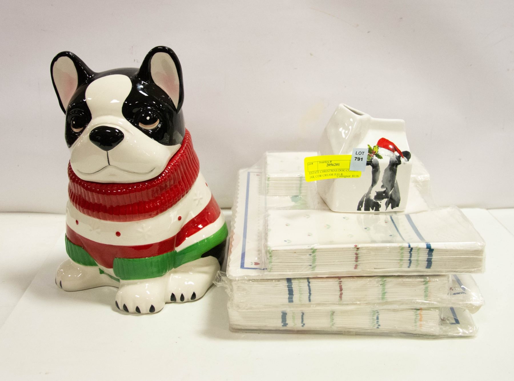 ESTATE CHRISTMAS DOG COOKIE JAR, COW CREAM JUG &