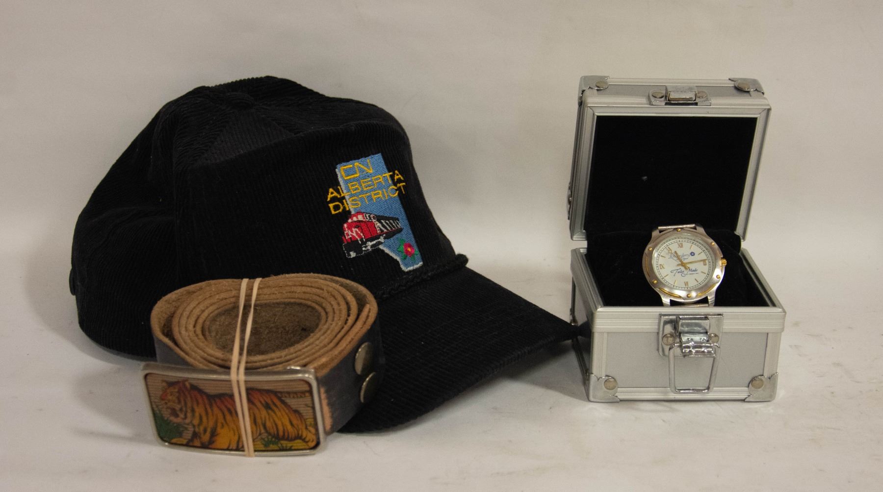 ESTATE CN HAT, WATCH IN CASE, & TIGER LEATHER