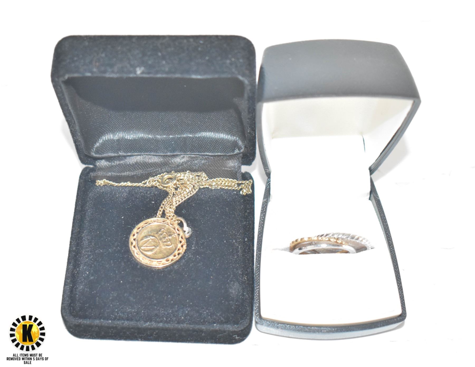 ESTATE COIN PENDANT NECKLACE, TRI RING SET IN