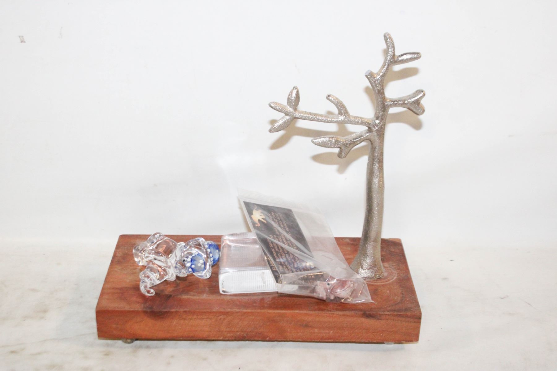 SQUARE ETCHED DECOR PC + WOODEN BASED RING DISH WITH ATTACHED METAL JEWELRY HOLDER TREE