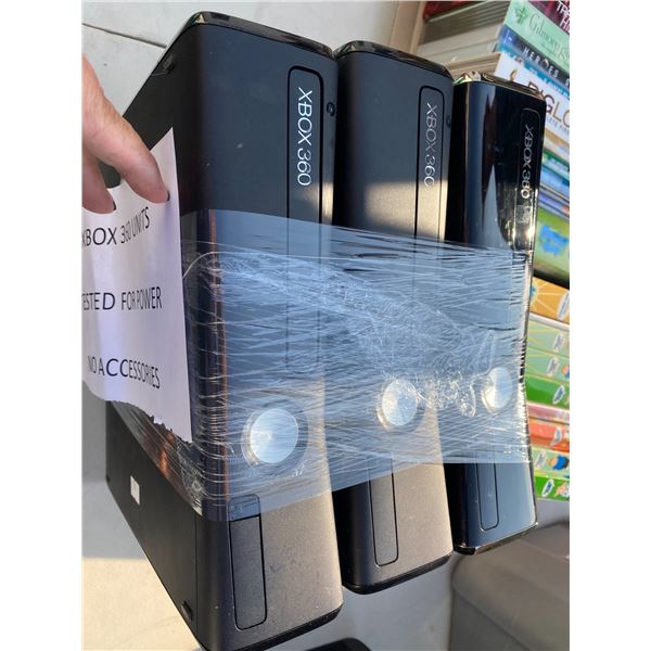 Xbox 360 units (3) tested for power comes with no cords727 - Xbox 360 units (3) tested for power comes with no cords