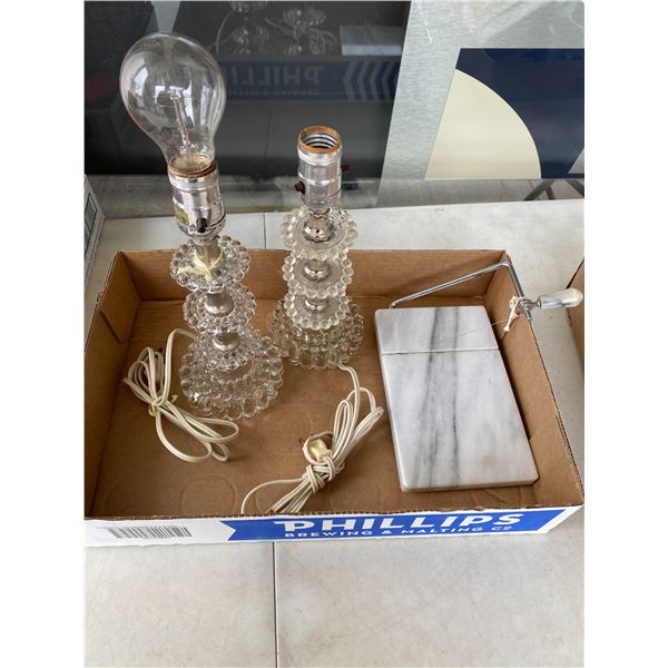Table lamps and cheese cutter