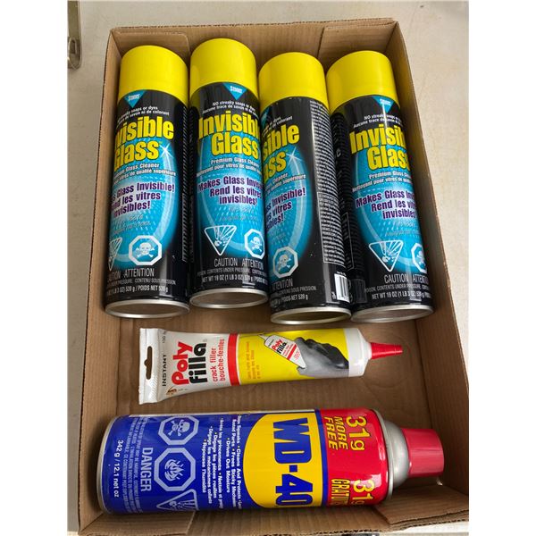 Glass cleaner, WD 40 and poly filla