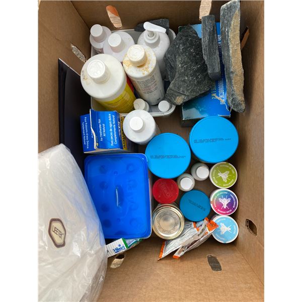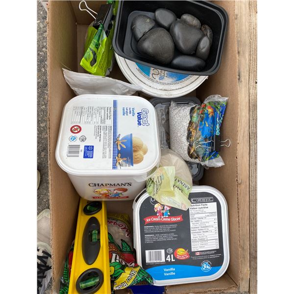 Aquarium items and lidded bin