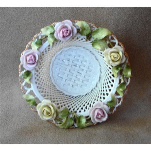 Featured for sale is a beautiful Dresden Basket with applied flowers. The basket weaving is really thin, and beautiful. The flowers are many differant colors, and outstanding.
