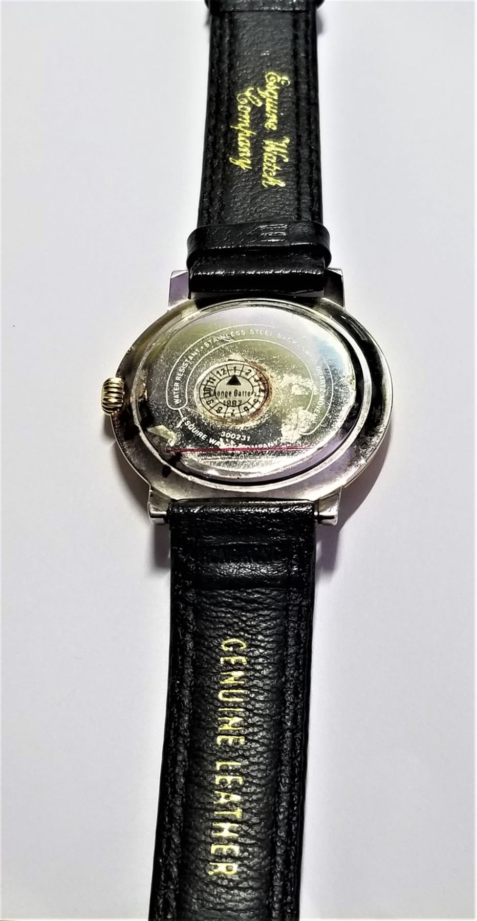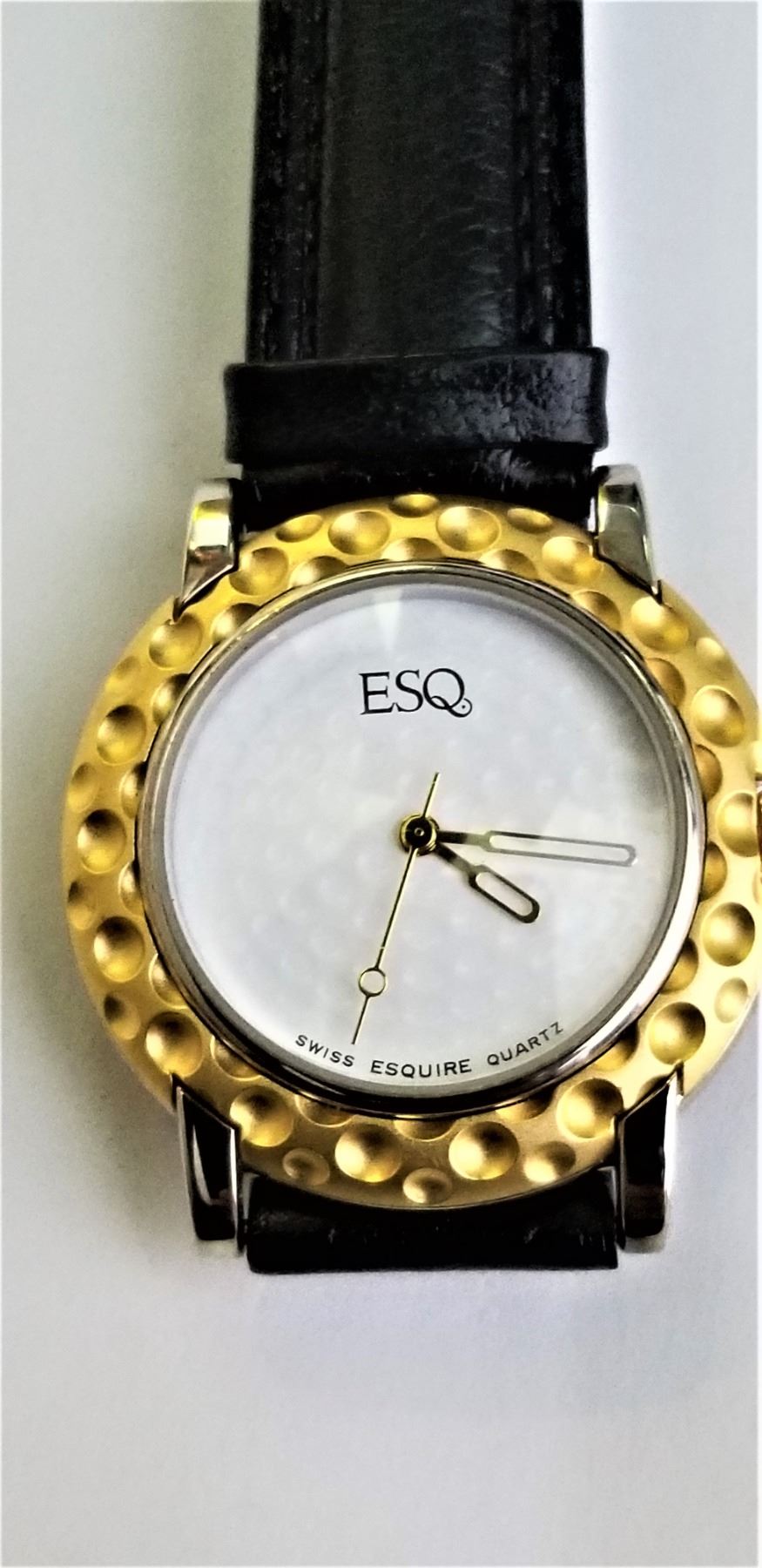 W/ ORIGINAL LEATHER STRAP. ESQ IS A MOVADO COMPANY.
