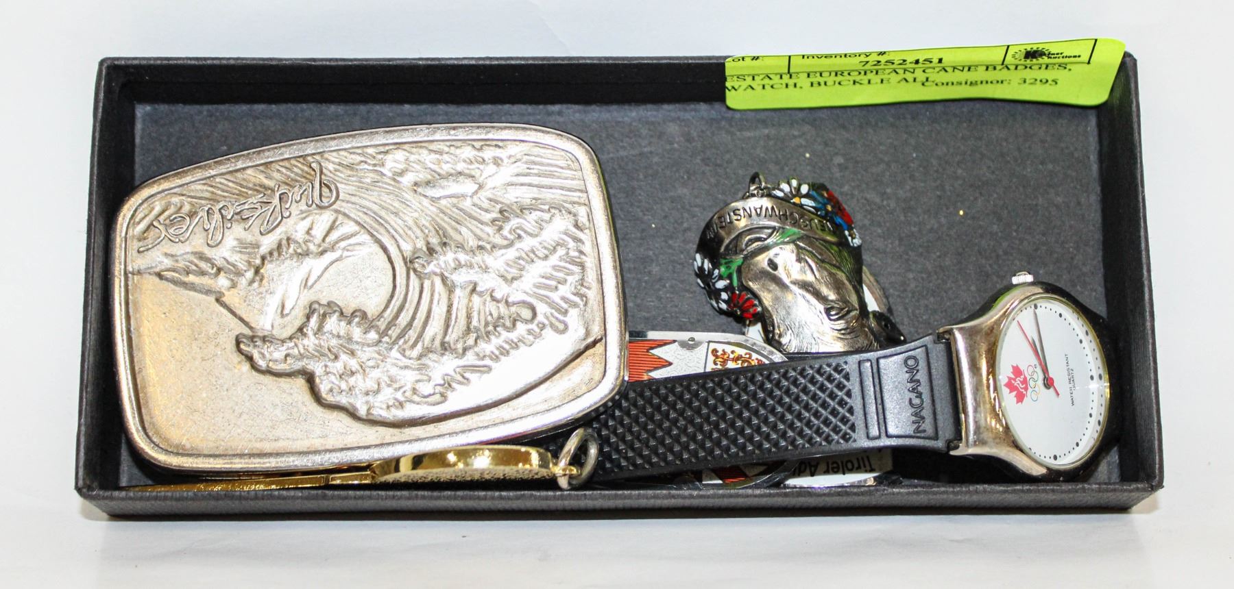 ESTATE EUROPEAN CANE BADGES, WATCH, BUCKLE ALL