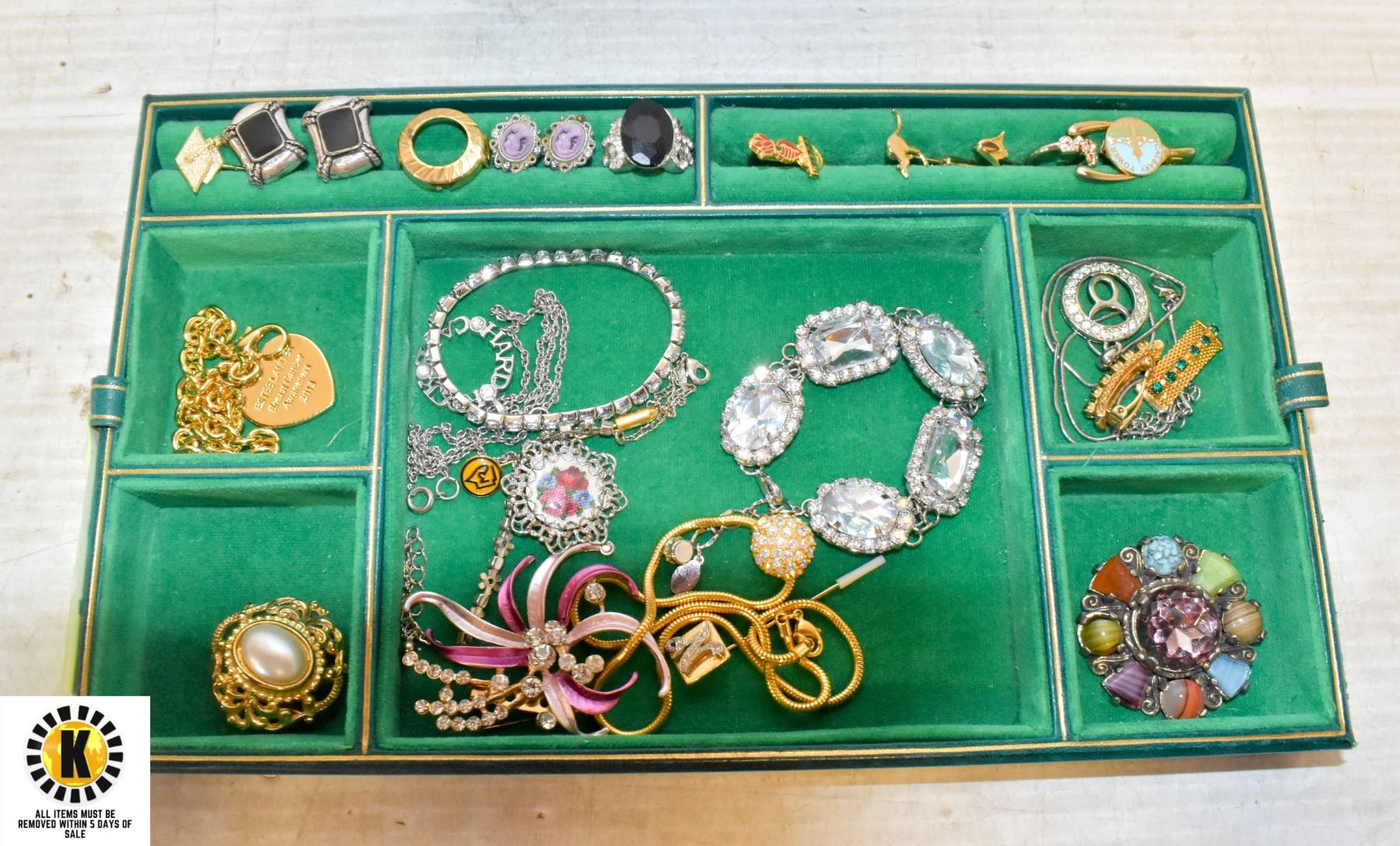ESTATE FANCY JEWELERY IN GREEN TRAY