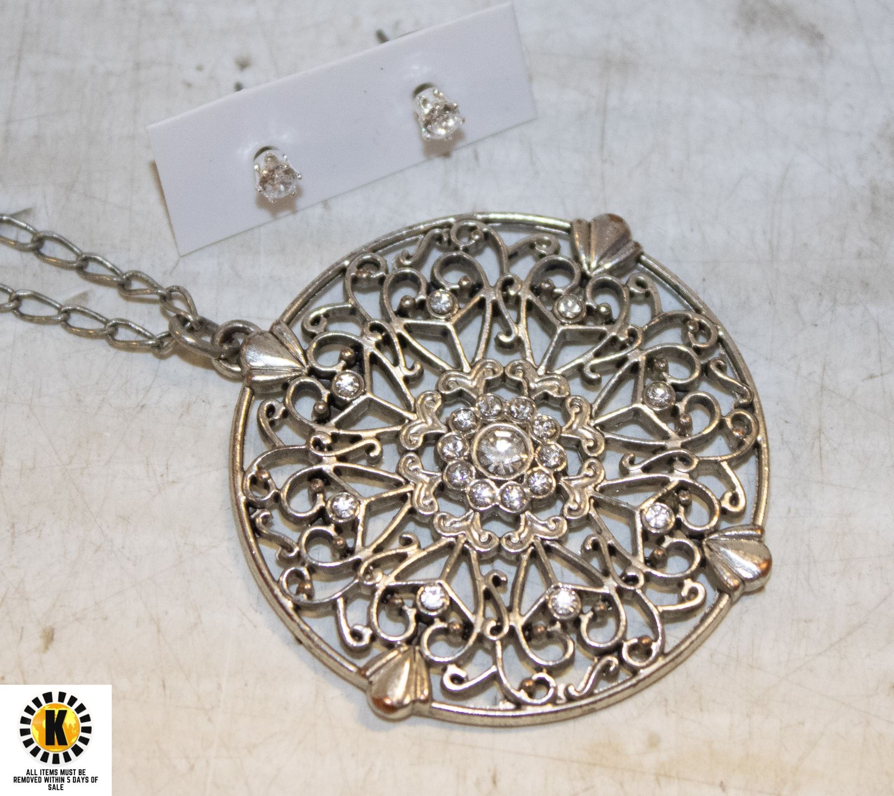 ESTATE FILLIGREE NECKLACE WITH SOLITAIRE EARRINGS