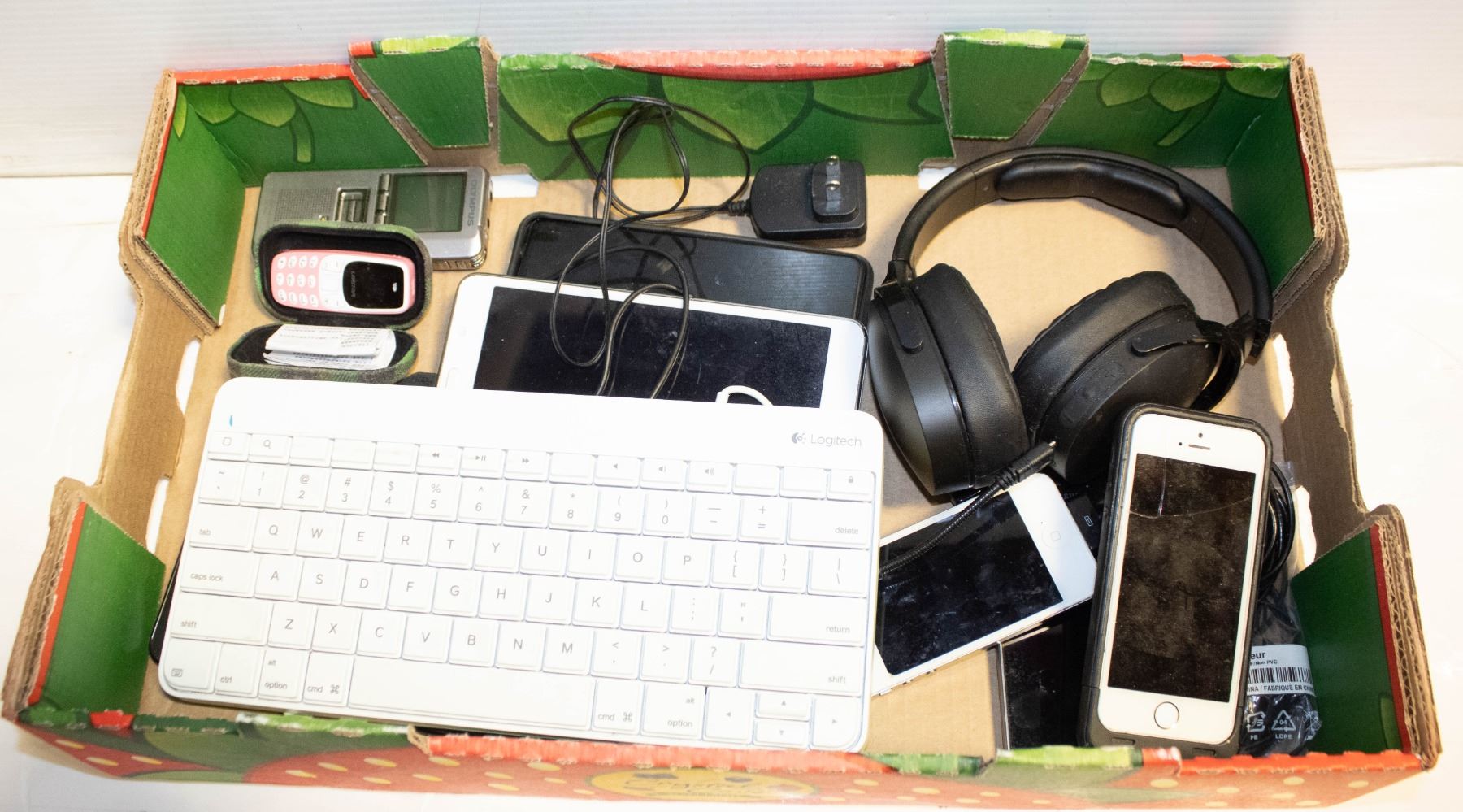 LOGITECH WIRED KEYBOARD FOR IPAD LIGHTNING CONNECTORS, WIRELESS OVER-EAR HEADPHONES, SAMSUNG TABLETS, MINI PHONE, ETC. - THESE ITEMS ARE UNTESTED OR MAY REQUIRE PASSWORD