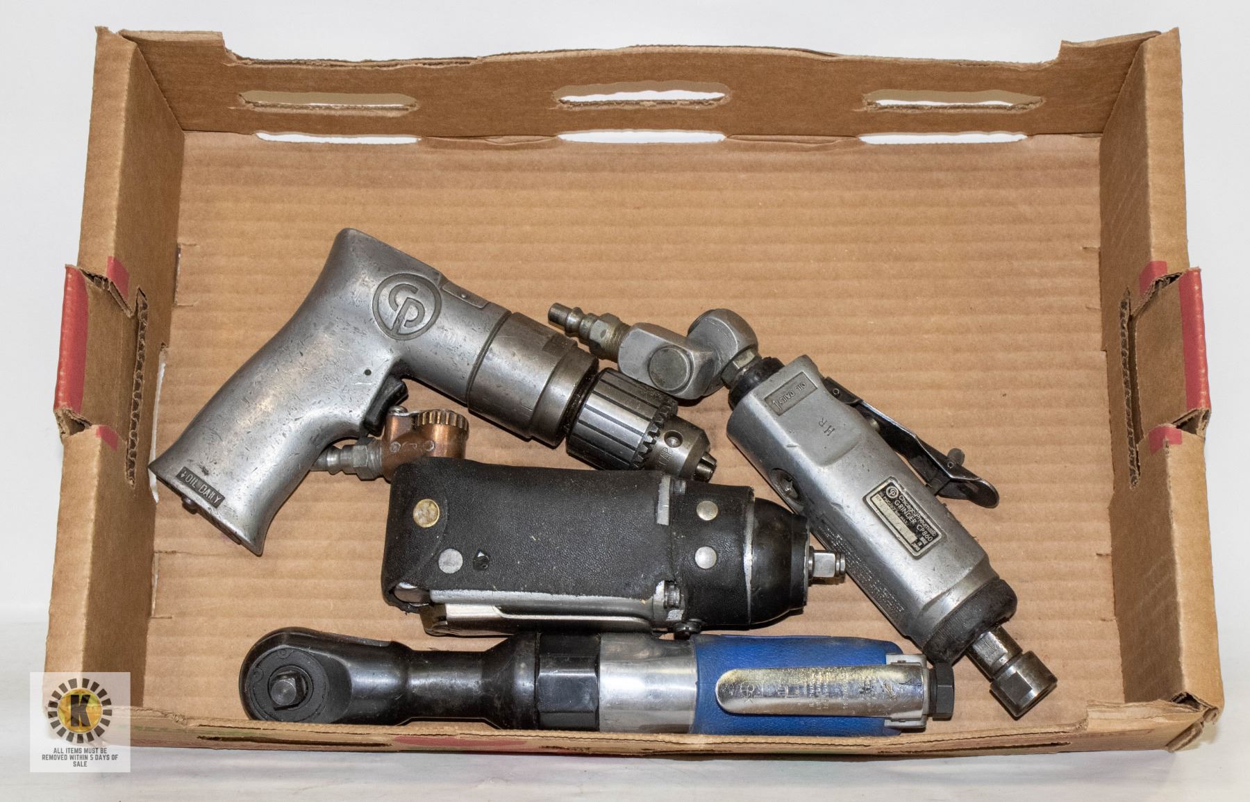 HAUSFELD 3/8" DRIVE AIR RATCHET, AIR DIE GRINDER, AIR DRILL, AND 3/8" DRIVE STRAIGHT IMPACT WRENCH **ALL ITEMS MUST BE REMOVED BY 5PM SATURDAY, APRIL 3RD 2025. ALL REMAINING ITEMS WILL BE SUBJECT TO A $6.00 PER DAY STORAGE CHARGE. ANY ITEMS REMAINING AFTER MONDAY, MAY 19TH 2025 WILL BE CONSIDERED FORFEITED. NO REFUNDS WILL BE ISSUED FOR FORFEITED ITEMS. TO SCHEDULE A PICK UP APPOINTMENT CLICK HERE