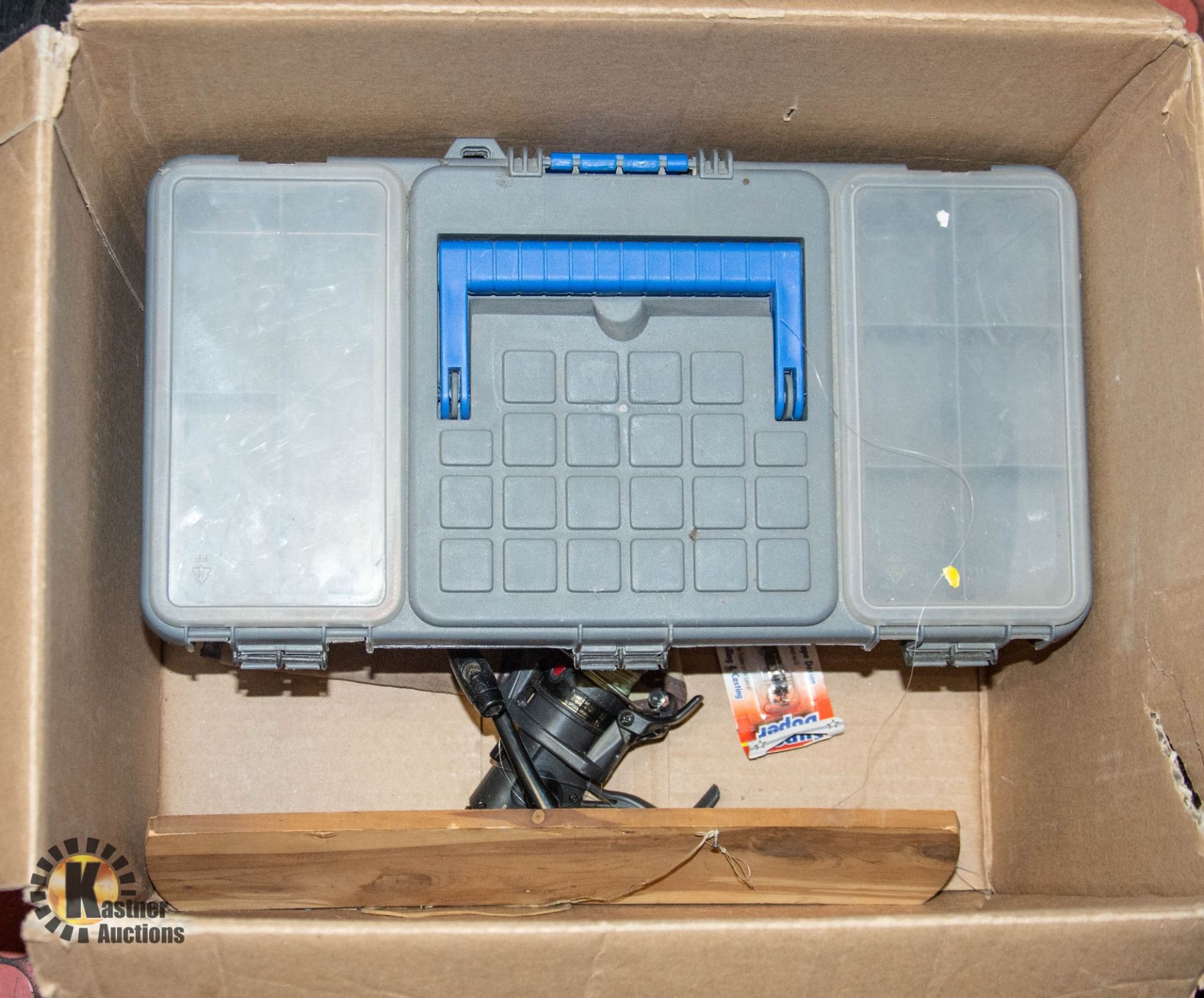 PORTABLE CANVAS SEAT, TOOLBOX WITH ASSORTED TIES/FLIES FOR FISHING + CASE FOR FISHING RODS **ALL ITEMS MUST BE REMOVED BY 5PM SATURDAY, JANUARY 18TH 2025. ALL REMAINING ITEMS WILL BE SUBJECT TO A $6.00 PER DAY STORAGE CHARGE. ANY ITEMS REMAINING AFTER MONDAY, FEBRUARY 10TH 2025 WILL BE CONSIDERED FORFEITED. NO REFUNDS WILL BE ISSUED FOR FORFEITED ITEMS. TO SCHEDULE A PICK UP APPOINTMENT CLICK HERE