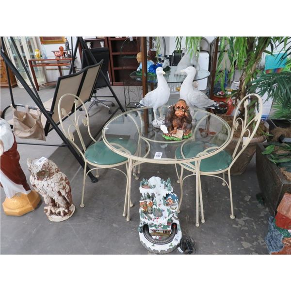 Ornamental Iron Round Glasstop w/2 Parlor Chairs