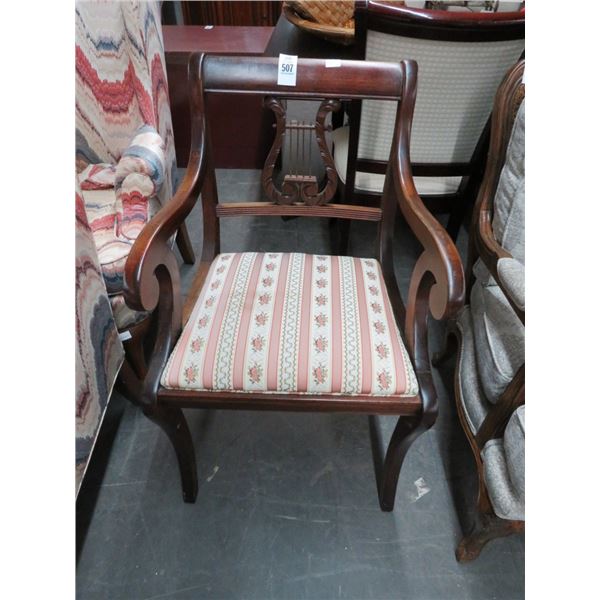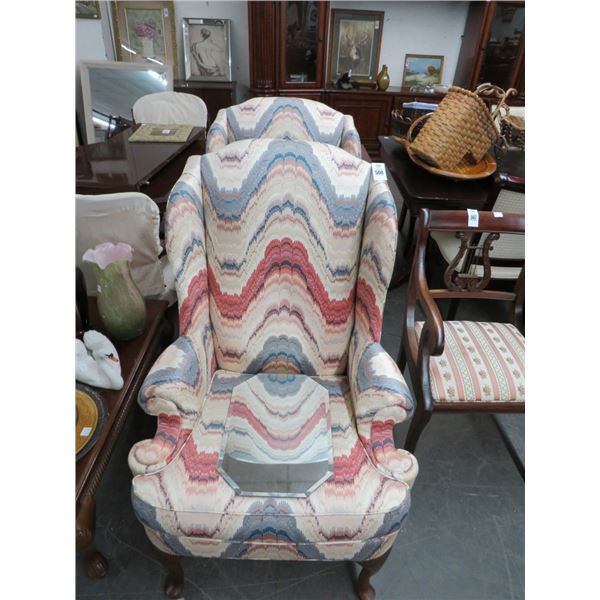 Mahogany Queen Anne Mauve Cloth Wingback Chairs