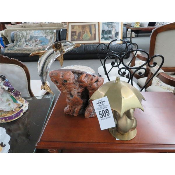 Art Glass Dolphin, Brass Umbrella Duck Décor