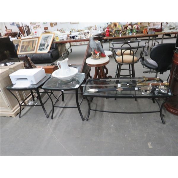 Black Glasstop Tile Inlay Coffee/End Tables - Set of 3