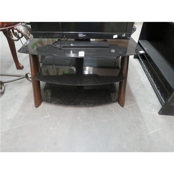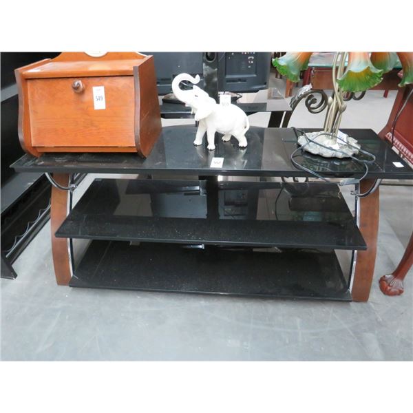 Contemporary Mahogany Trim 3 Tier Glass TV Console w/Stand