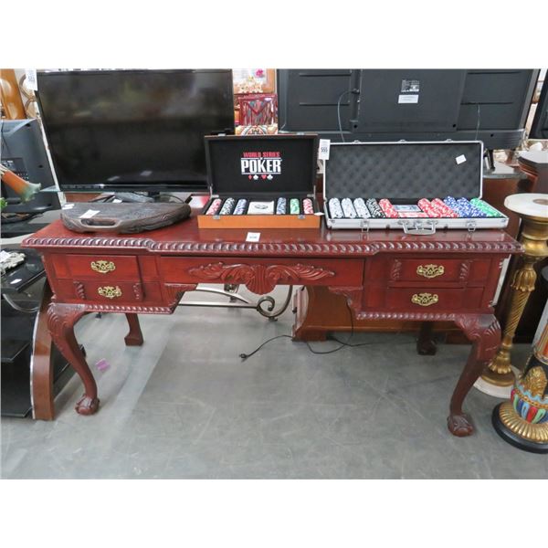 Ornate Cherry Ball In Claw Carved Desk w/Brass Trim