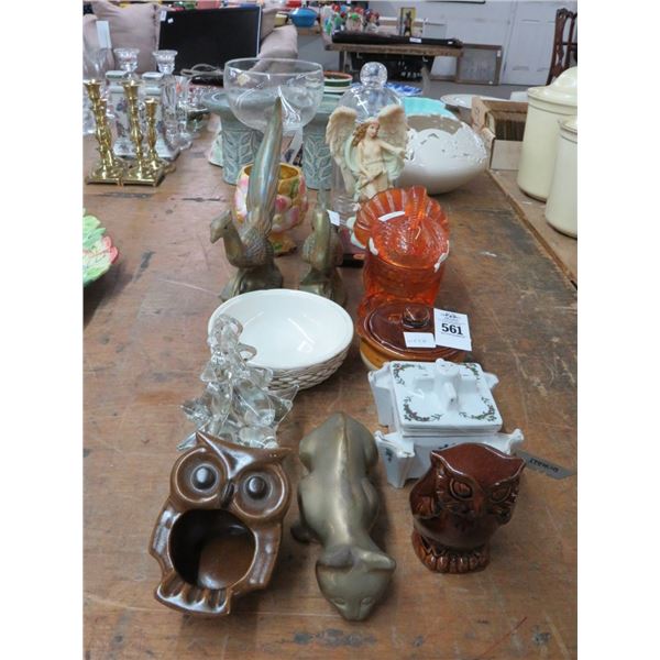 Art Glass Turkey, Brass Cat, Asst. Table and Décor Items