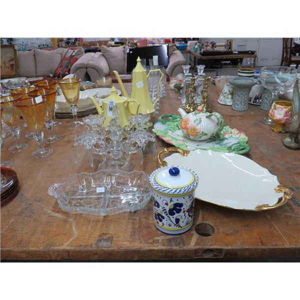 Crystal Candlesticks, Etched Bowls, Platters, Pitchers