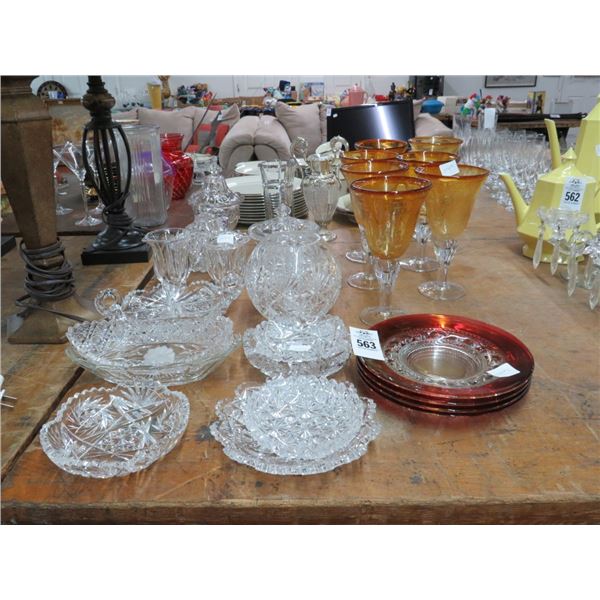 Asst. Pressed Glass and Crystal Bowls, Dishes, Art Glass Goblets