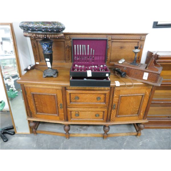 Carved Tiger Oak Footed Buffet59 - Carved Tiger Oak Footed Buffet