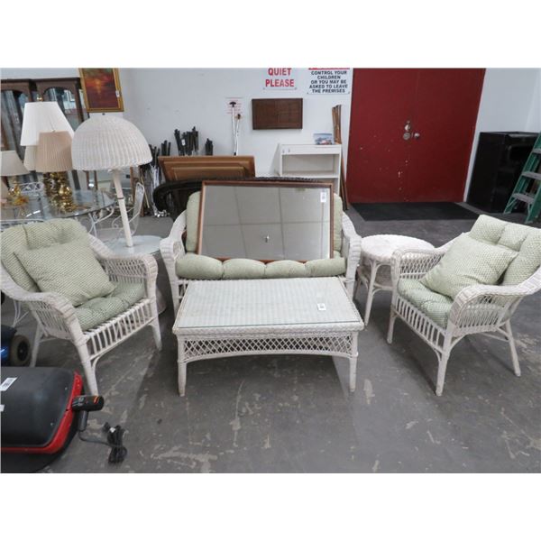 Wicker Padded Loveseat/Armchairs/Coffee/End/Lamp Table Set