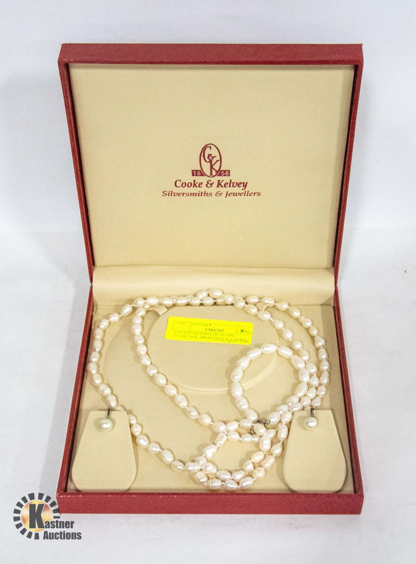ESTATE GENUINE PEARL NECKLACE, BRACELET & EARRINGS