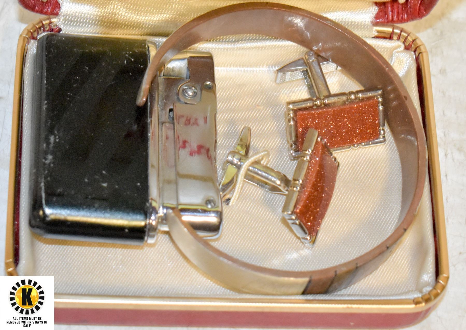 ESTATE GOLD STONE CUFFLINKS, LIGHTER & SILVER/