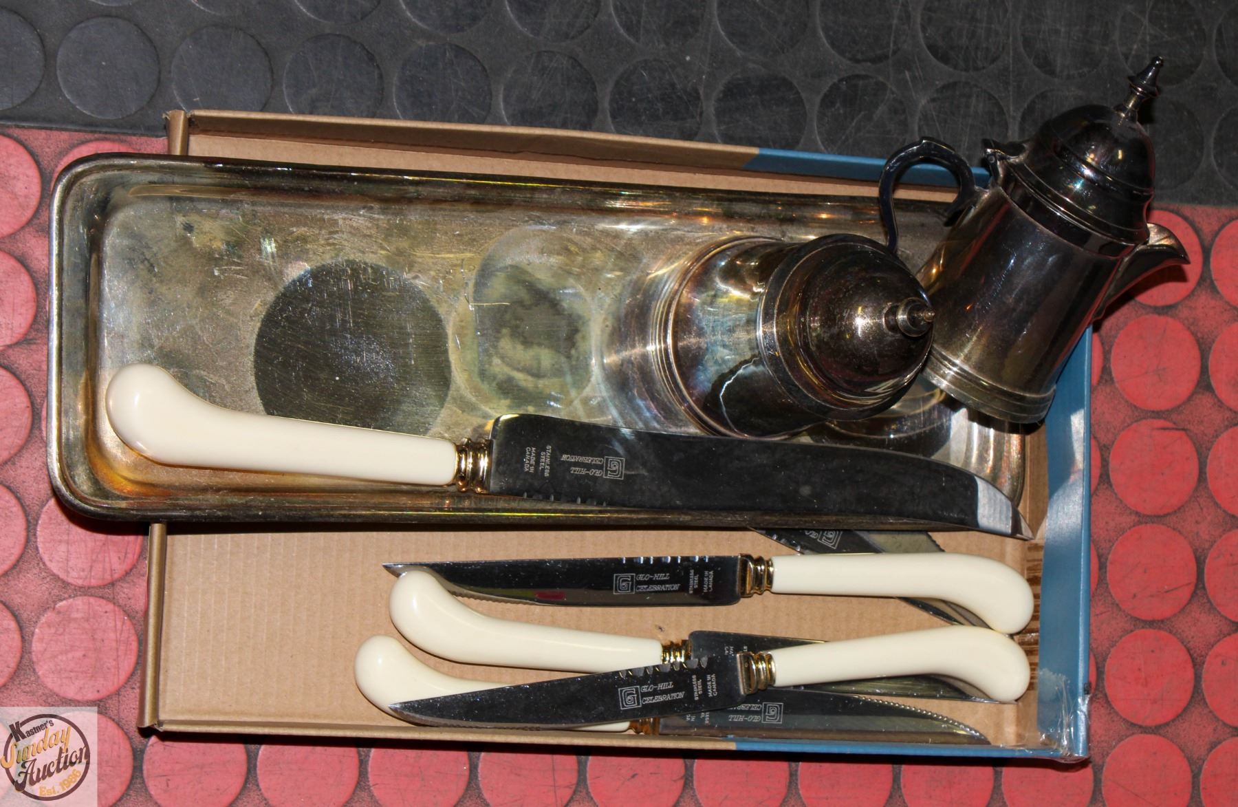 GLO-HILL CELEBRATION MADE IN CANADA WHITE HANDLED KNIFE SET **ALL ITEMS MUST BE REMOVED BY 5PM SATURDAY, MAY 10TH 2025. ALL REMAINING ITEMS WILL BE SUBJECT TO A $6.00 PER DAY STORAGE CHARGE. ANY ITEMS REMAINING AFTER MONDAY, MAY 26TH 2025 WILL BE CONSIDERED FORFEITED. NO REFUNDS WILL BE ISSUED FOR FORFEITED ITEMS. TO SCHEDULE A PICK UP APPOINTMENT CLICK HERE