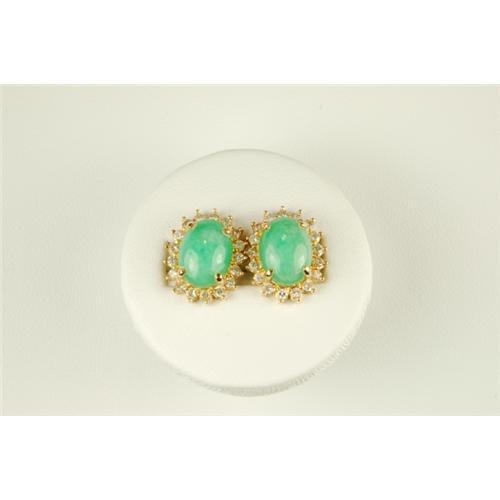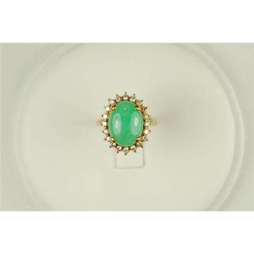 This Ring and Earring IMPERIAL JADE Suite came to us from a VERY FINE ESTATE. The ring is 14k Yellow Gold and it features an Oval IMPERIAL JADE = 5 CARATS! It is surrounded by 20 FINE DIAMONDS = .40 Carats. The matching Earrings are 14k Yellow Gold, and each Earring features an Oval IMPERIAL JADE = 3.50 CARATS surrounded by 16 FINE DIAMONDS. The IMPERIAL JADE TOTAL WEIGHT = 7.00 CARATS! And the DIAMOND Total Weight = .50 CARATS! The Earrings have Gold post style backs for pierced ears. IMPERIAL JADE refers to Jadeite found in Burma, and it is considered the rarest and most highly prized of all the Jades.