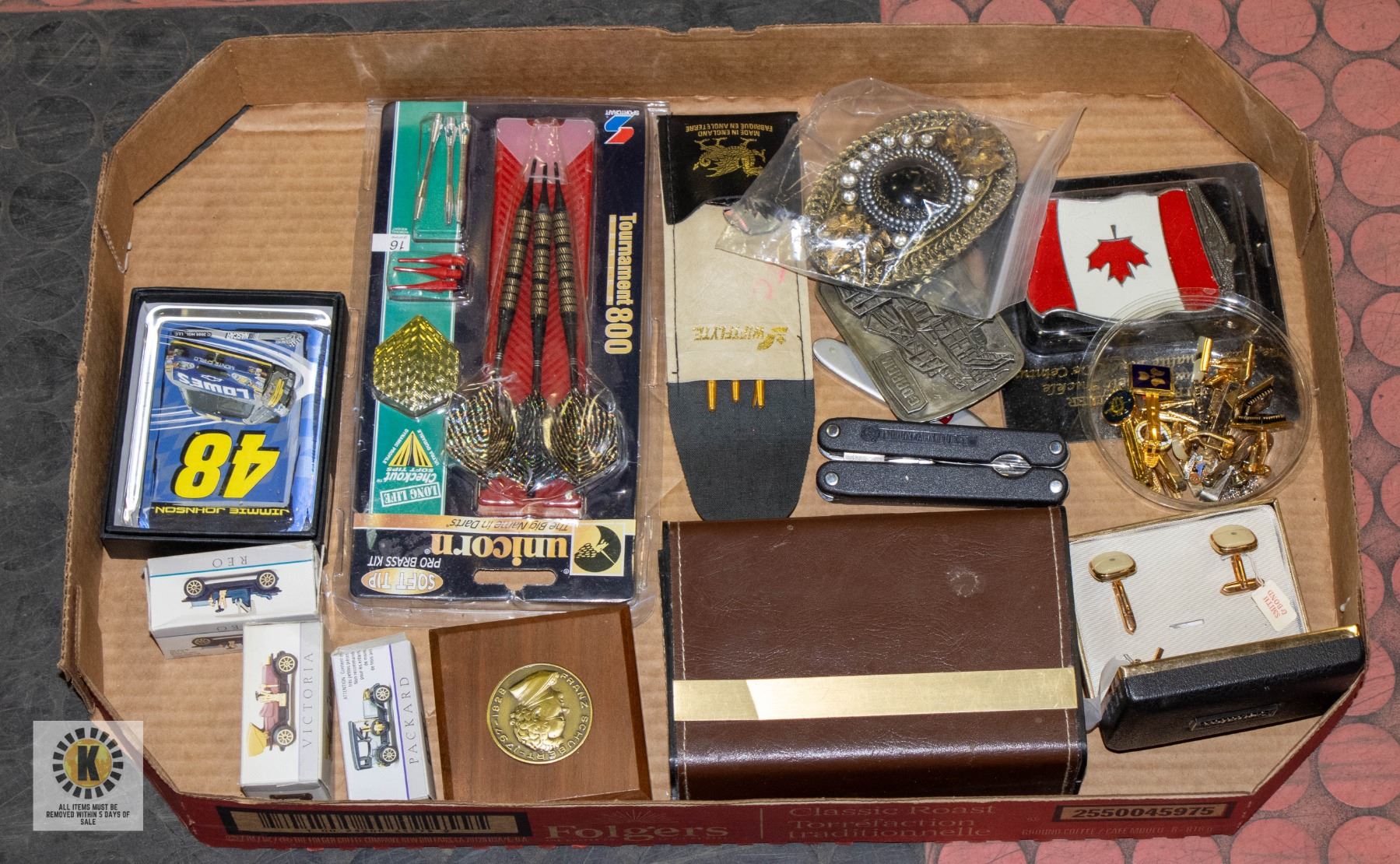 1797-1828 W/RAZOR & BRUSH SET IN LEATHER CASE, SEALED UNICORN DARTSET, NEW CANADA BELT BUCKLE 1 MADE IN GERMANY & CORRAM LIMITED EDITION 239/250 SMITH & BOND CUFFLINK SET W/OTHER'S & MORE ITEMS **ALL ITEMS MUST BE REMOVED BY 5PM SATURDAY, APRIL 26TH 2025. ALL REMAINING ITEMS WILL BE SUBJECT TO A $6.00 PER DAY STORAGE CHARGE. ANY ITEMS REMAINING AFTER MONDAY, MAY 12TH 2025 WILL BE CONSIDERED FORFEITED. NO REFUNDS WILL BE ISSUED FOR FORFEITED ITEMS. TO SCHEDULE A PICK UP APPOINTMENT CLICK HERE
