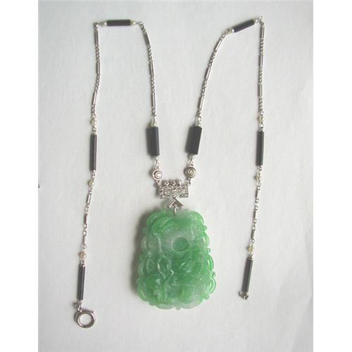 <tr><td>Title:ESTATE JADE/ PEARL/ DIA/ ONYX NECKLACE/14K</td></tr>