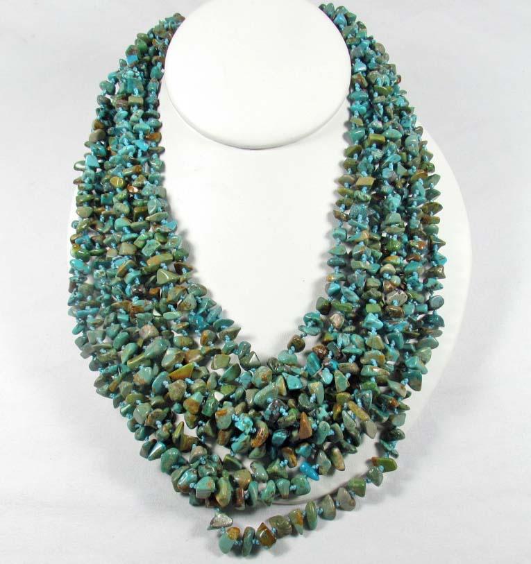 ESTATE JEWELRY - 10 STRAND STERLING SILVER AND TURQUOISE NECKLACE