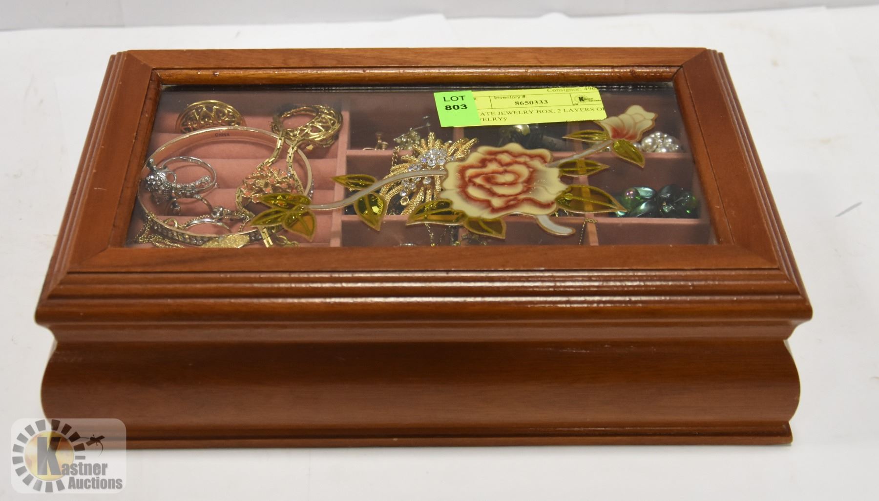 ESTATE JEWELRY BOX, 2 LAYERS OF JEWELRY