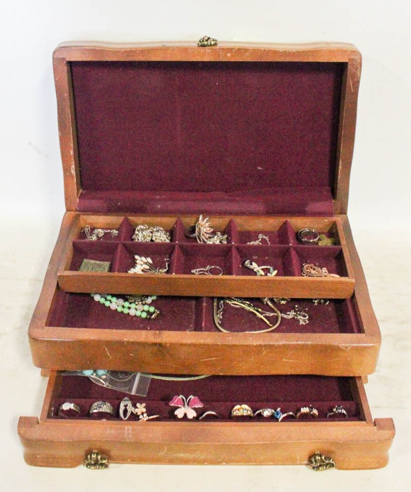 ESTATE JEWELRY BOX INCL 925 SILVER PIECES