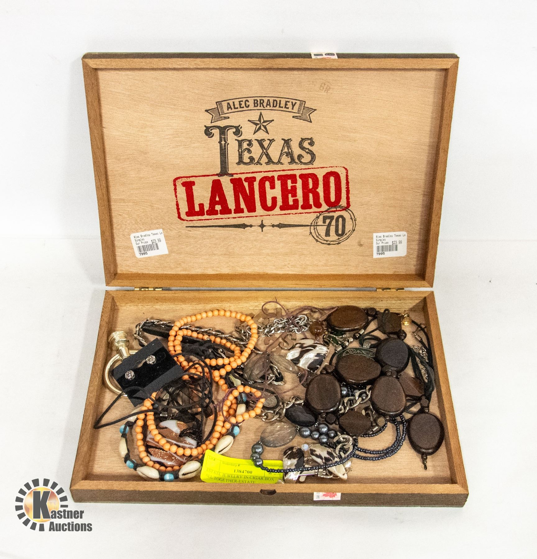 ESTATE JEWELRY IN CIGAR BOX ALL TOGETHER-ESTATE