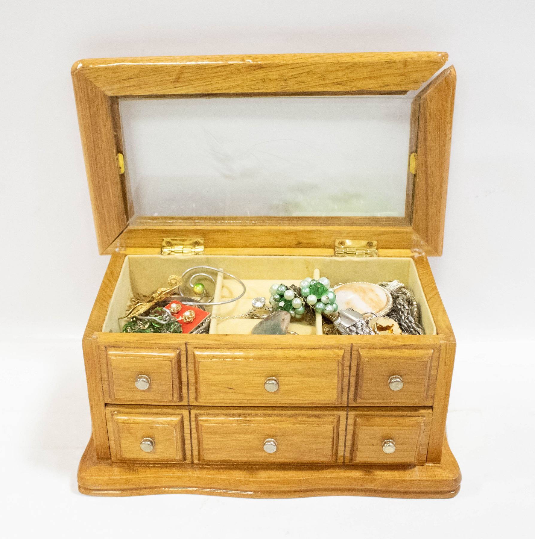 ESTATE JEWELRY LOT IN WOODEN VINTAGE JEWELRY CASE