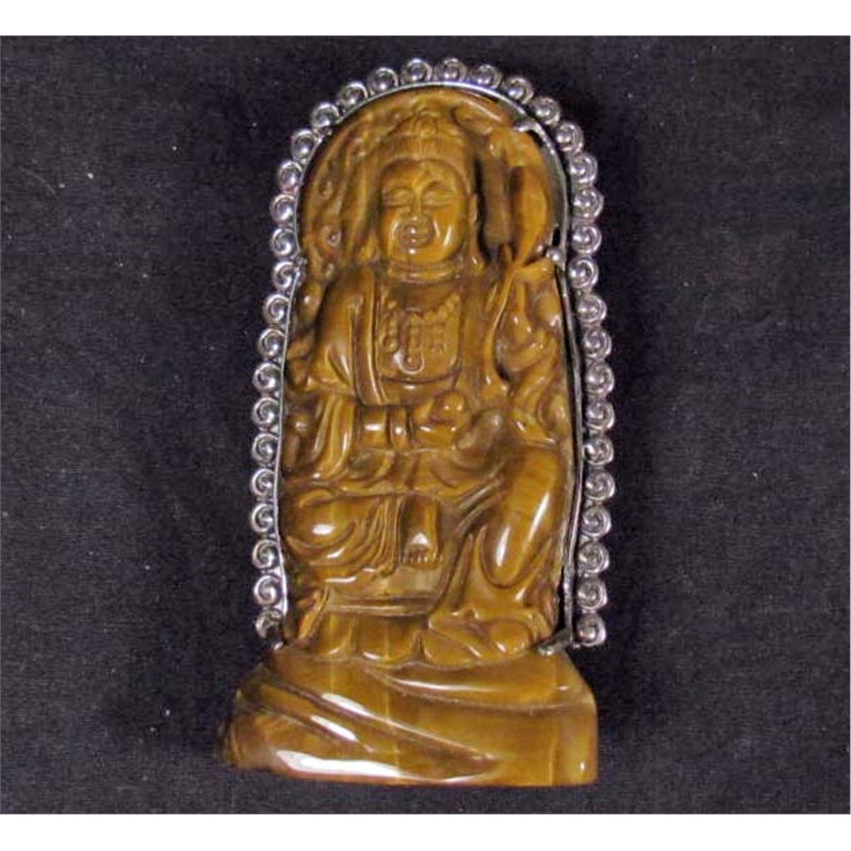 ESTATE JEWELRY SET W/ HAND CARVED SOLID TIGE EYE W/ STERLING SILVER - 2.50 OZ.