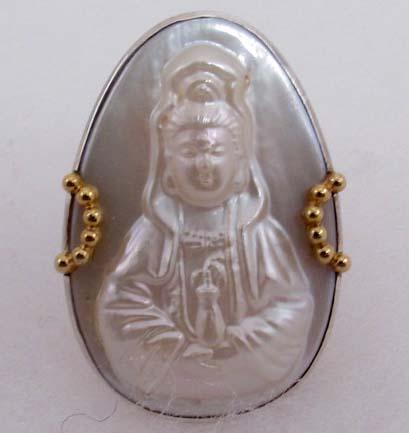ESTATE JEWELRY STERLING SILVER AND MOTHER OF PEARL RING