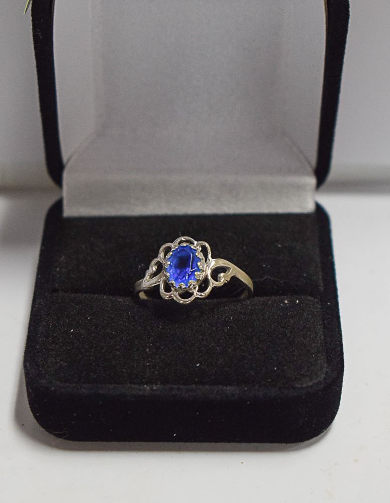 ESTATE LADIES STERLING RING BLUE STONE SIZE 8
