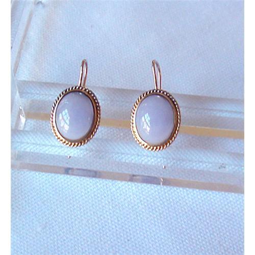 ESTATE ~ LAVENDER JADEITE EARINGS ... consisting of one oval cabochon-cut lavender jadeite in each earring measuring 9.5 X 11.5 MM ... the stones are well matched in colour. They are set in a 14K twisted gold wire frame with kidney wire backs. These earrings come with an appraisal from LUX BOND & GREEN for $550. Please view our entire collection of fine jewelry and arts. BURTON BROOK FARM ANTIQUES