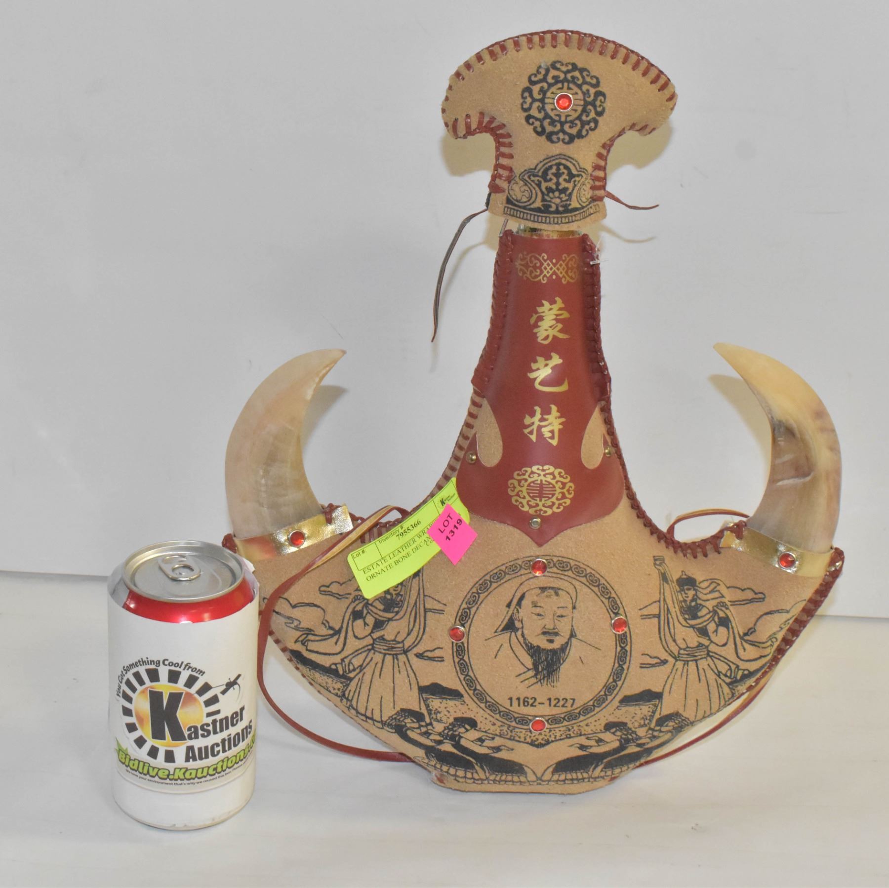 ESTATE LEATHER WRAPPED ORNATE BONE DECANTER