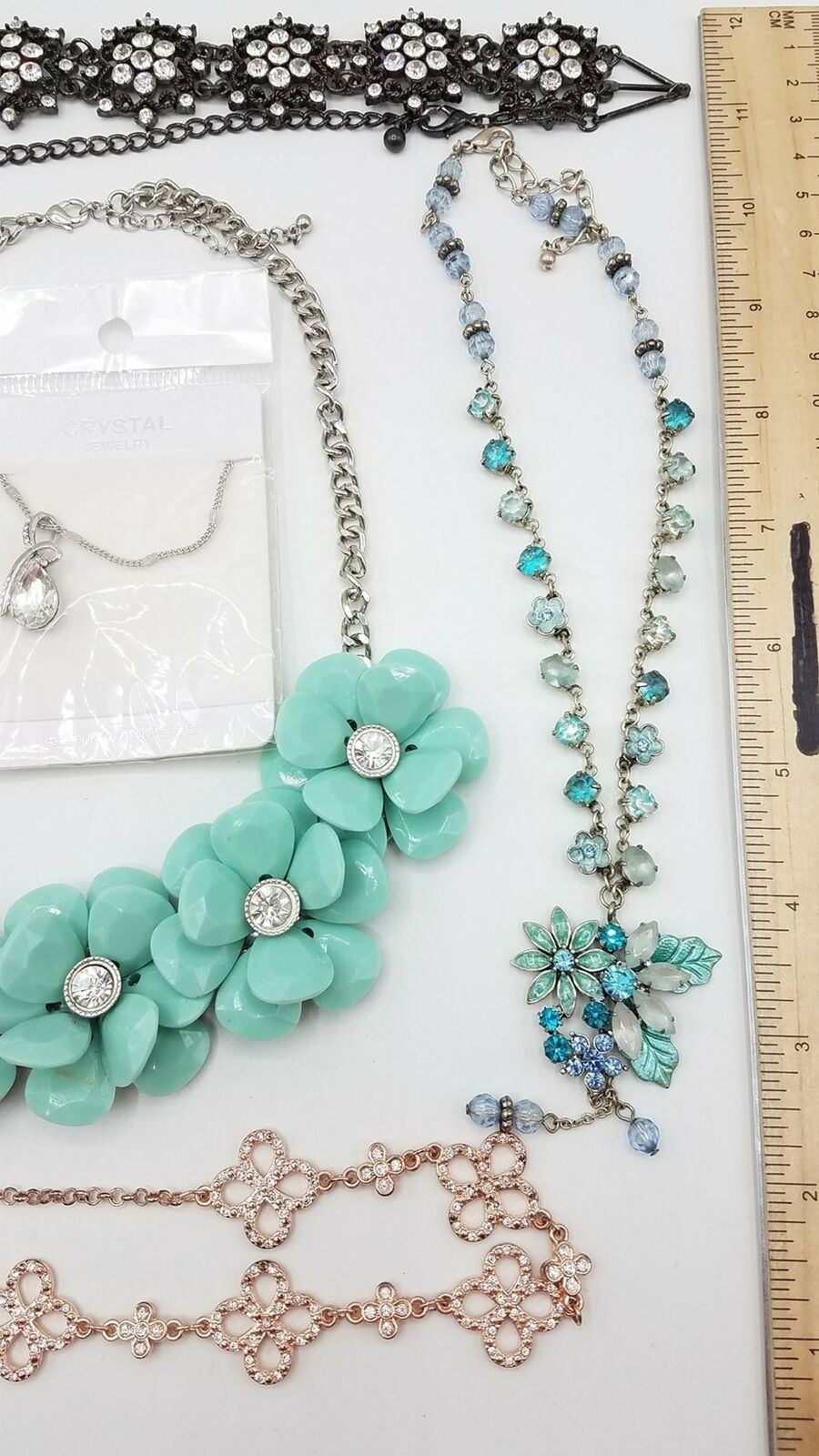 ESTATE LOT OF RHINESTONE NECKLACES GOLD/SILVERTONE