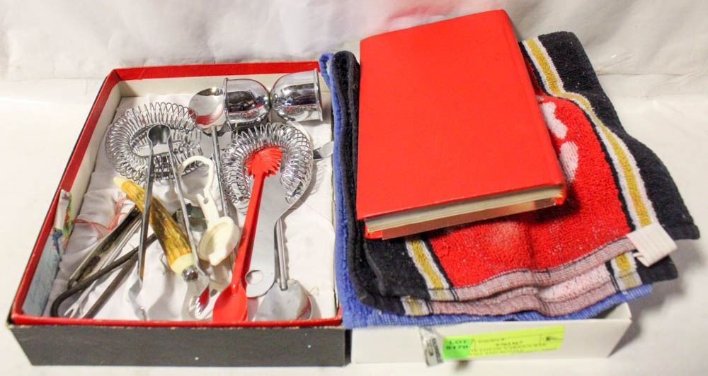ESTATE LOT OF VARIOUS BAR SUPPLIES AND BOTTLE