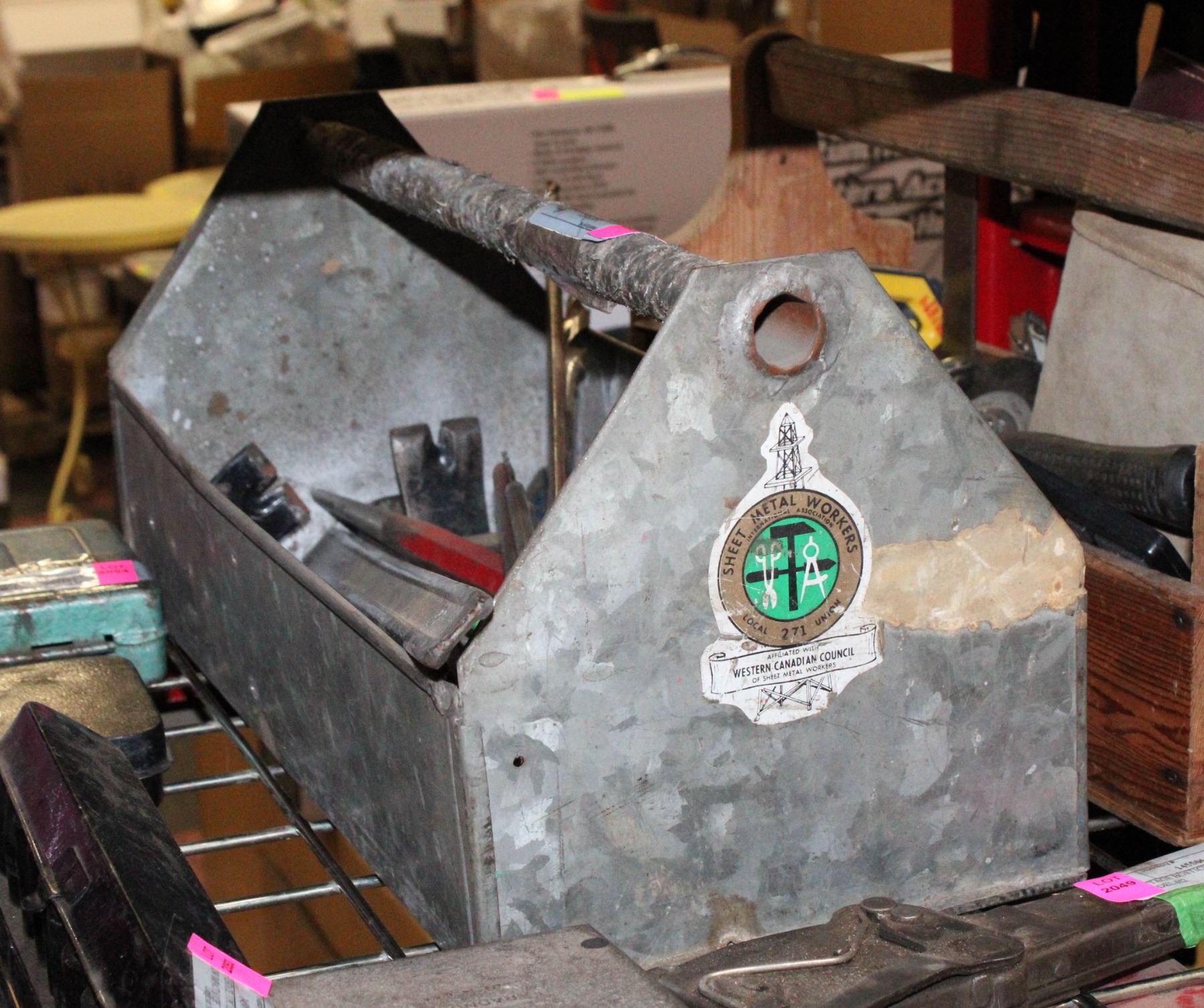 ESTATE METAL TOOL BOX WITH VARIOUS TOOLS,