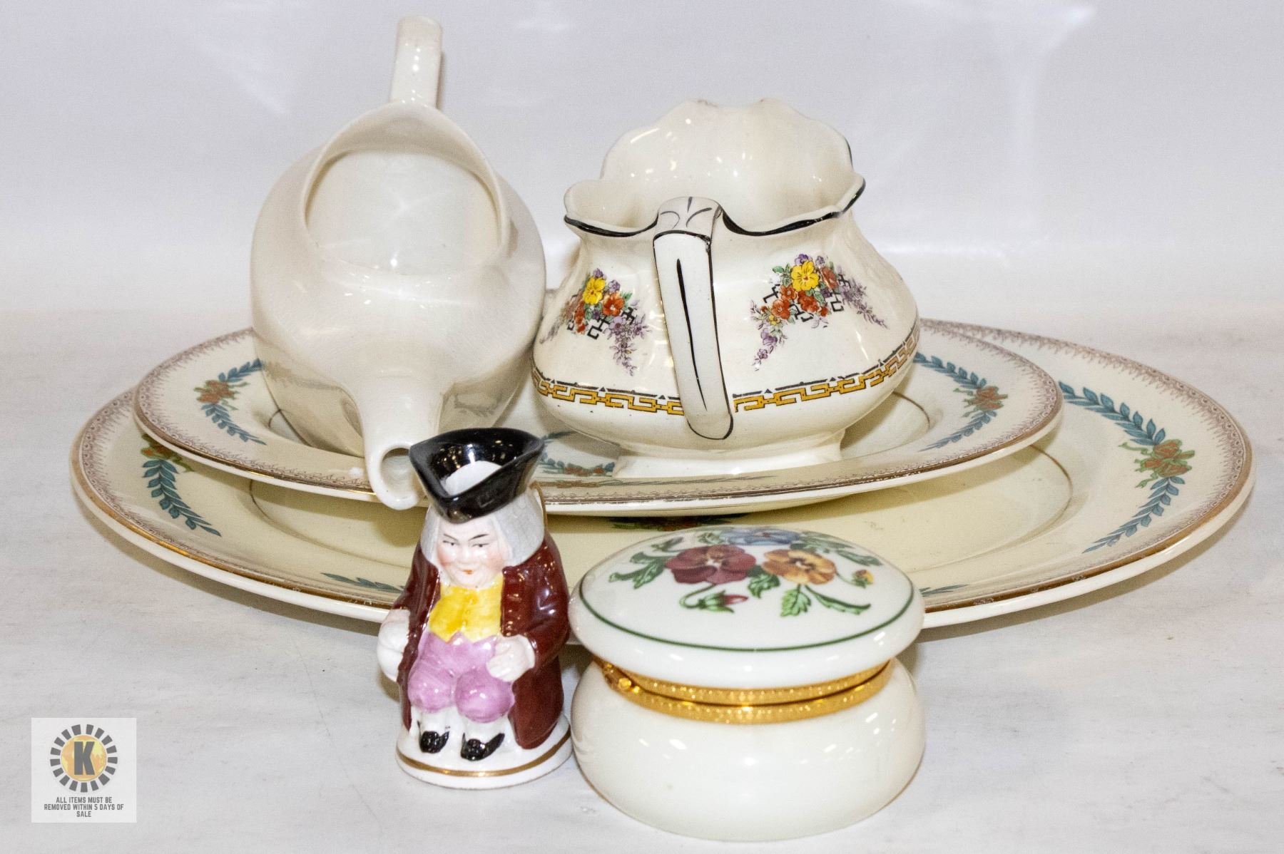WARE + HINGED LIDDED TRINKET BOX + MINI HANDLED VICTORIAN JUG **ALL ITEMS MUST BE REMOVED BY 5PM SATURDAY, APRIL 26TH 2025. ALL REMAINING ITEMS WILL BE SUBJECT TO A $6.00 PER DAY STORAGE CHARGE. ANY ITEMS REMAINING AFTER MONDAY, MAY 12TH 2025 WILL BE CONSIDERED FORFEITED. NO REFUNDS WILL BE ISSUED FOR FORFEITED ITEMS. TO SCHEDULE A PICK UP APPOINTMENT CLICK HERE